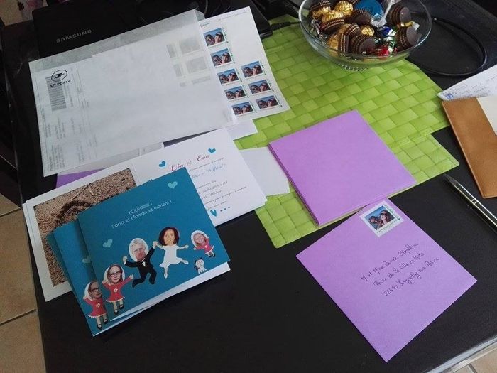 De retour de vacances, nous avons eu la joie de retrouver nos faire part et nos timbres, arrivés en notre absence, trop bien !!! Allez c'est parti pour la préparation des enveloppes et demain l'expédition ! En route pour la préparation Nos timbres...