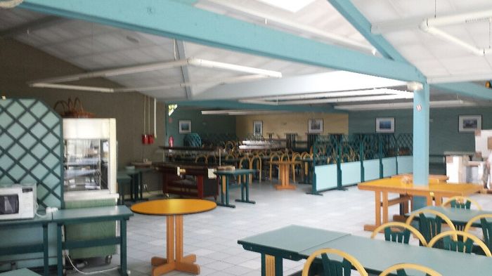 Bonjour les fillesVoilà j'ai trouver la salle des fêtes et comme vous pouvez le voir sur les photos je n'ai d'idée de deco pour le plafond nos couleurs sont rouge et blanc j'aimerais donc cacher les poutres verts auriez vous des idée ou des exemple...