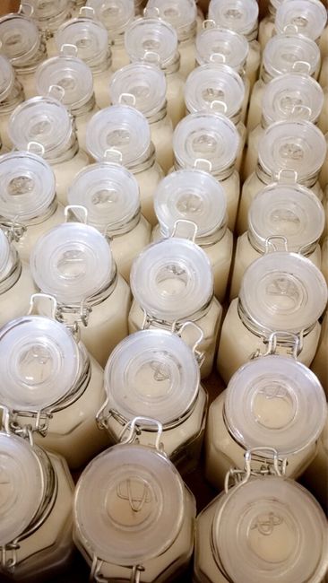 Cet après-midi c'était atelier bougies chez mes parents ! On a choisi d'en offrir aux invités à la place des dragées... Et pour les enfants on mettra des smarties dans les petits pots. J'ai acheté 5kg de cire de soja sur internet (afairesoimeme.com)...