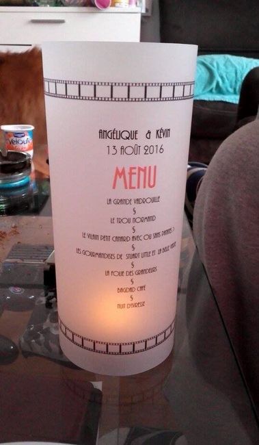 trop contente de moi je devais acheter mes menus en photophore a une dame et finalement j'ai voulu tester moi meme et du cup ben voila je les vais les faires ca donne trop bien j'adore le seul truc qui changera sera la couleur du ruban mais la...