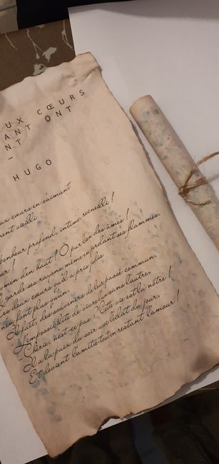 Mon futur et moi sommes des grands romantiques alors quoi de mieux que d'avoir une feuille poésie à chaque table. Cela servira de décoration et d'animation. Astuce: On peut vieillir le paper soi-même.