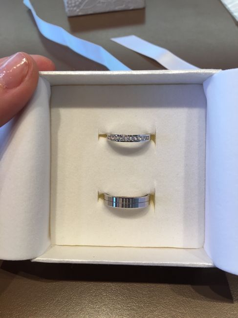 Aujourd'hui nous sommes passés essayer nos alliances pour vérifier que la taille était ok ! Et cette fois ci j'ai pensé à la photo ...Nous sommes ravis ... Elles sont parfaites ? Elles repartent pour la gravure : nous avons choisi " Forever Yours"...