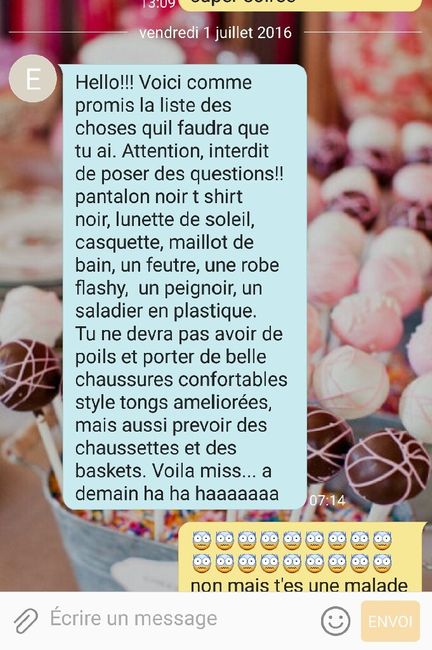 Hello les girls, me voilà de retour de mon EVJF. Je suis claquée mais heureuse. Lors de mon dernier post je vous communiquait ma liste à avoir et mon euphorie à l'idée de cette journée mais j'étais bien loin de penser que cette journée serait aussi...