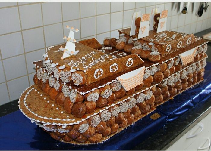 Bonjour les filles comment aller vous ? Voilà je voudrai savoir vous avez fait plus pièces monté chou ou gâteau. Ou les 2 ? Nous on va faire une pièce montée chou en forme de bateaux de croisière voici une photo et un gâteau au fruit normal à côté...