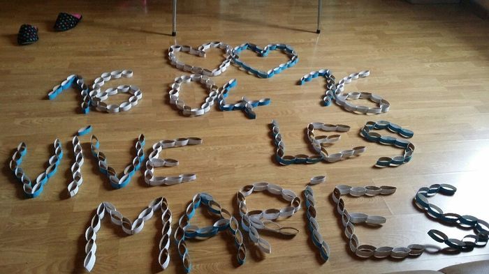 Bonjour à toutes Je voudrai savoir ce que vous pensez de cette petite touche de deco que je compte accrocher au mur le jour du mariage dans la salle. Je trouve que le résultat est super beau pour ma part et sa donne bien ce que je voulais