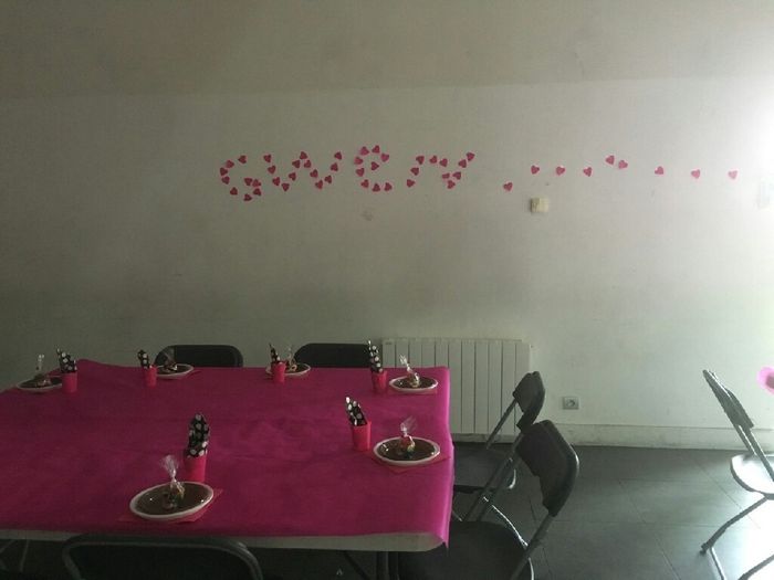 Nous avions pas un gros budget pour notre mariage alors nous avons fait des choix. Et la deco de la salle était pour nous le moins important environ 100 euros max avec la vaisselle jetable. Mais elle était parfaite pour nous et l ambiance de notre...