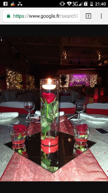 Un petit avis? Je mettrai soit des bouquets de roses blanche soit un vase comme la dernière photo (2/tables).Et la serviette ? Voilà ce que j'ai comme idée mais j'aimerais bien un avis extérieur alors allez y :-)