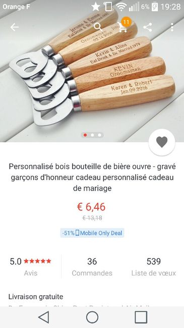 Bonjour !Voila je pensai offrir un porte clé décapsuleur pour les hommes. Mais il y en a tellement sur internet ! J'ai peur que la qualité soit mauvaise!Quelqu'un en a déjà commandé ? Auriez vous un site à me conseiller ?Merci !Stéphanie