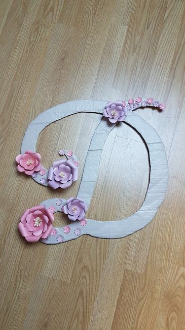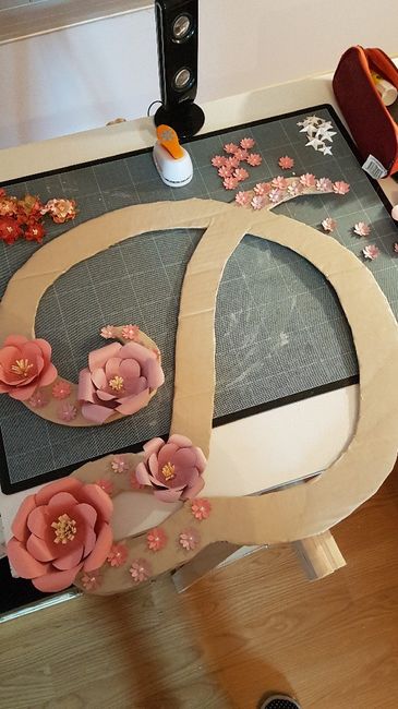Bonjour à toutes,Voilà je me suis lancé dans la déco de mes grandes lettres faites maison et après m'être lancée je sèche un peu sur le placement de la suite (les fleurs sur la photo sont déjà collées) je peux refaire des plus grosses ou mettre autre...