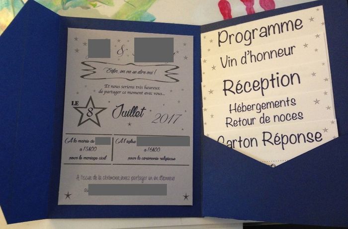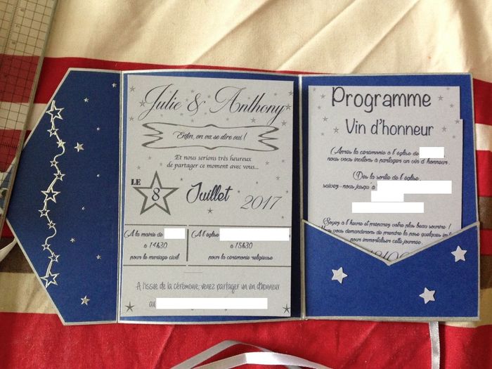 Coucou, Je suis trop fière Je vous présente mon proto de faire part (bon il y a pas encore tout ce que je veux, pas mal de décos à ajouter), je suis amoureuse ! Même si dans 80 faire part je pourrais pu le voir en peinture lol Les cartons sur le...