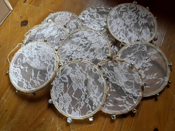 Marques places. Pics pour faire le plan de table. Tambourins dentelle pour la cérémonie laïque. Et essaie noeuds de voiture. Donnez moi vos avis!!!