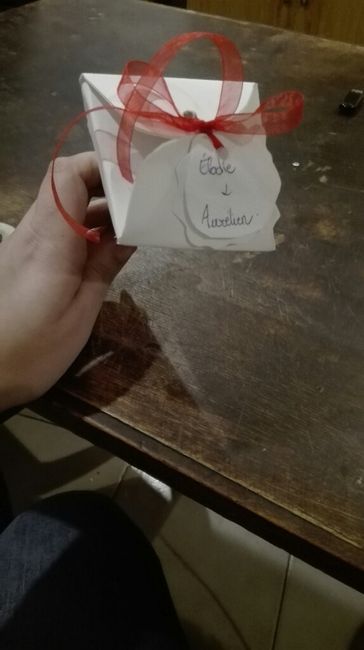 Bonjour Premier test des contenants a bonbons très fière de moi Le ruban sera un ruban a motif bonbons le papier idem Et le.rond de nos nom en rose et violet Mais c'est une première ebauche Nous mettrons a l'intérieur des bonbons et un macaron ...