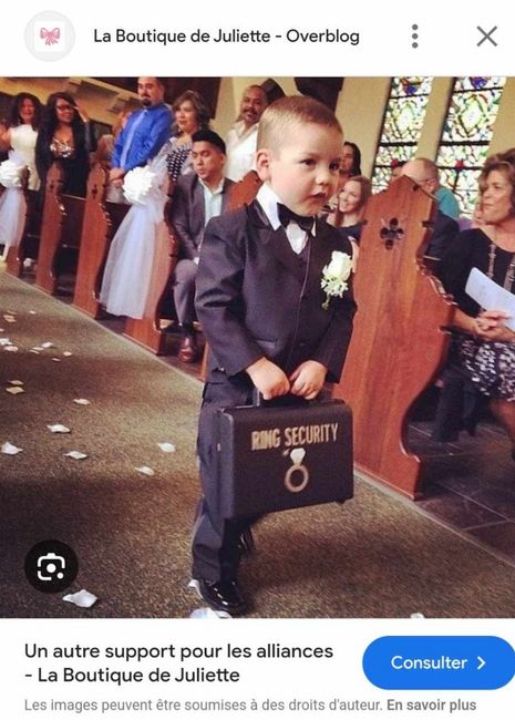 Bonjour à tous ! Nous aimerions que nos deux filles qui auront au moment du mariage 5 ans et 3 ans nous apportent les alliances, nous n'avons pas envie d'un coussin d'alliances en forme de coussin 🤪 mais je ne sais pas ce qui pourrait le remplacer (...