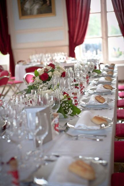 Coucou les filles! Voilà la deco des tables qu'on a fait ...si ca peut inspirer .. Des roses rouges des roses blanches du gypsophile des baies rouges et du feuillage. .Les invités ont adoré et d'ailleurs plusieurs m'ont demandé si il ztait possible...