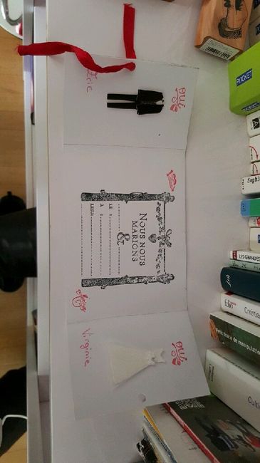 Coucou , voila je me demande si je ne ferais pas mes faire parts moi meme mais je ne suis pas trop douee pour le manuelle et je n'ai aucune idee de comment faire , avez vous des photos pour le votre? Mon theme : l'amour et les sentiments merci