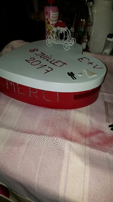 Assez en avance mais voici mon urne diy je l'adore à un détail près mais bon fait bien faire plaisir à chéri