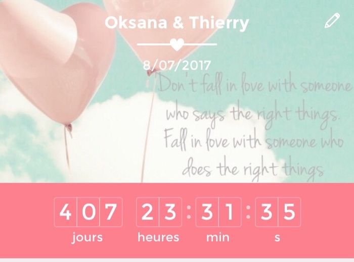 Et voilà le compte à rebours commence dans 1 an c'est notre grand jour. D'autre futurs mariés du 8 juillet 2017?