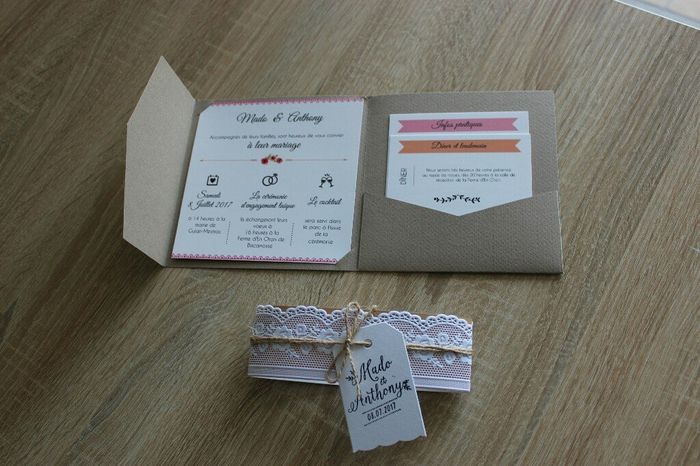 Voici nos petits FP ! Nous avons customisé les cartons sur le site carteland ! Super qualité et très bon service clients : je recommande ! Ensuite nous avons ajouté la dentelle, la cordelette, les étiquettes... des heures et des heures de travail...