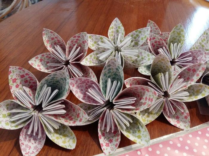Les soirées se suivent et se ressemblent ... atelier origami pour mon bouquet, celui à lancer et la deco des tables. Déjà 20 fleurs de faites, encore 75 à faire ...