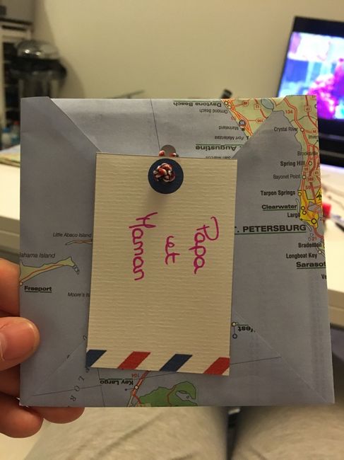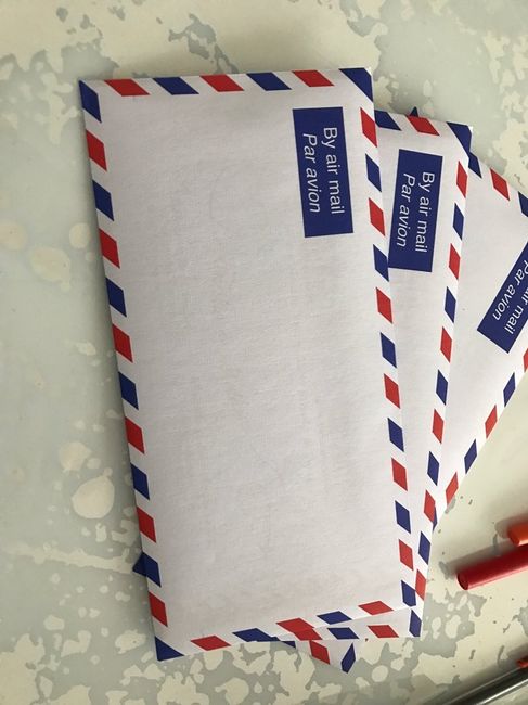 Voici les enveloppes diy pour mon save the date ...J'ai découpé une carte routière des USA et j'ai fait des étiquettes de bagages.
