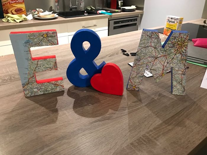 Aujourd'hui j'ai peint les lettres qui vont service de décoration. Elles seront à côté de la boîte à enveloppes !