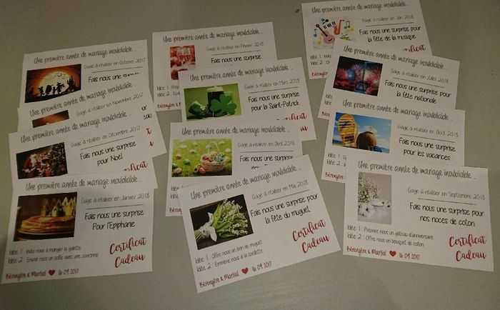 Après avoir vu les jolies cartes et diplômes de certaines d'entre vous, qui m'ont bien inspirée d'ailleurs 😊 Voilà mes cartes de gage pour le jeu des 12 mois, reste à définir les objets qui seront demandés ^^