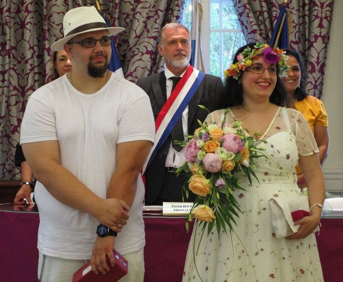 Il y a 3578 joursCoucou !!! Et voilà, depuis le 25 juin, je suis mariée, à nouveau ^^ Bon, il a fallu que je 27, je chope une "bronchite allergique bien salée", résultat, je n'ai pas pu venir vous parler de mon petit mariage ! Finalement, nous ne fûmes que 20, 10...