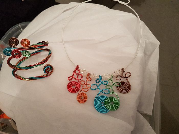 Salut, aujourd'hui jai créer mes bijoux collier et bracelet avec nos couleurs car ma robe est blanche dc je voulais faire le rappel dans mes accessoires.... qu en pensez vous?