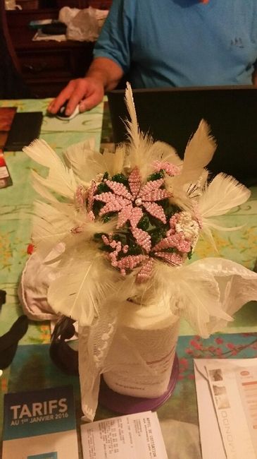 Voilà mon bouquet en perles, très joli mais petit je trouve . je sais que c'est beaucoup d'heure de travail. une amie va me le remonter et ajouter des choses. Vous en pensez quoi