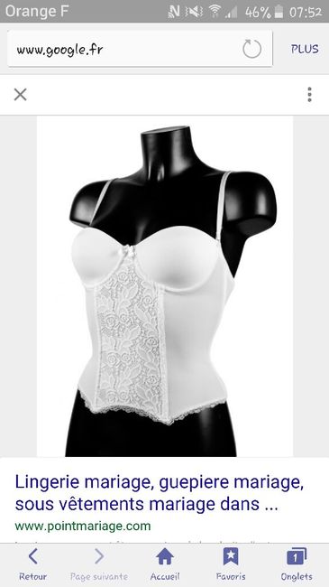 Avec mon 100E et ma robe bustier pas simple de trouver des sous vêtements adapté sauf dans les boutiques de mariage et encore.. j'ai trouvé chez point mariage mais forcément la facture pique 200EUR pour la guêpière et la culotte