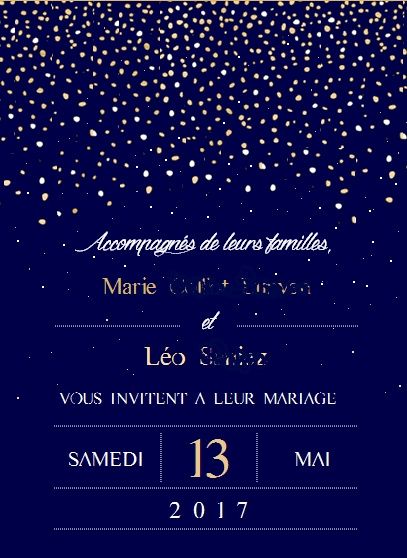 Bonjour à toutes ! Je voulais juste vous montrer ma création pour nos faire-parts! Nos couleurs sont le bleu marine, le doré et le blanc...! On voulait quelque chose de chic et simple, sans fioritures. Qu'est-ce que vous en pensez ? 1er essai...