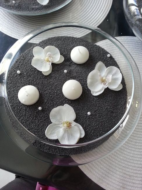 Allez les filles à vos photos !! Comment sont vos centre de table ? Je pensais que ça suffirait ce que j'avais trouvé mais comme j'ai pas de fleurs (je n'en veux pas) j'ai peur que ça fasse vide avec des tables rectangulaire colles à deux pour 10...
