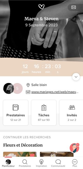 Hey, Nous voici, J-1. Toute la salle est installée. C'est top ! Ça a demander beaucoup de temps entre l'installation du photobooth, sono et aussi toute la nourriture à récupérer 😱 Terminés à 20h30, récupération des 3 enfants et au dodo, on est...