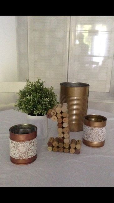 Bonjour Après avoir collecter des boîtes de conserves et des bouchons de vins Afin de les utiliser pour certains en guise de vase ( boite de conserve bombée et accessoirisée et avec les Bouchons. en liège nous avons créé des numéros de table Voila...