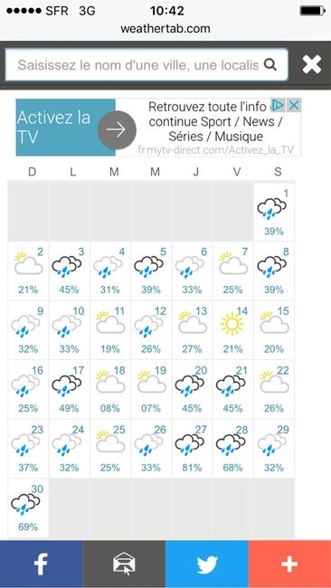 Coucou les mariés du mois d'avril, Voici notre météo Au max 15 degré Mini 7 degré ? Encore très très froid même si on a choisi de se marier au printemps.... n'oublier pas vos fourures?
