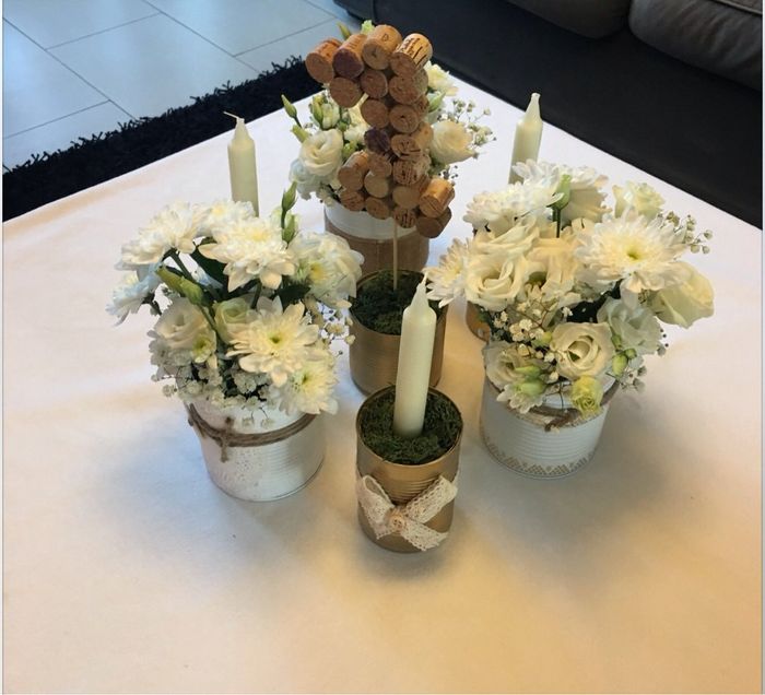 Bonjour Je me penche actuellement sur la deco de mes tables J'utilise des boîtes de conserves L'idée par la suite est de mettre des fleurs blanches , rose pastel , avec une pointe de verts dans les pots Quand pensez vous ?Sachant que j'ai placé le...