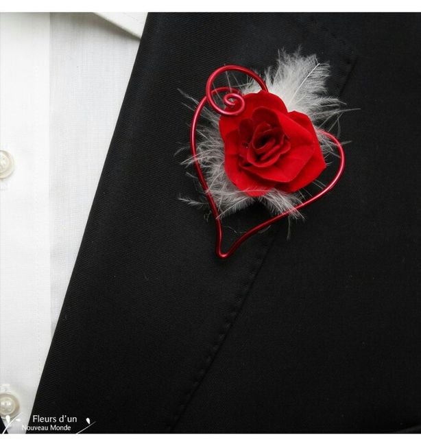 Je vais essayer de faire moi même la boutonnière de Monsieur. Ce modèle représente exactement mon thème (coeur et plumes en rouge et blanc) vous en pensez quoi ? Moi perso j'adore mais faut que je réussisse à la faire
