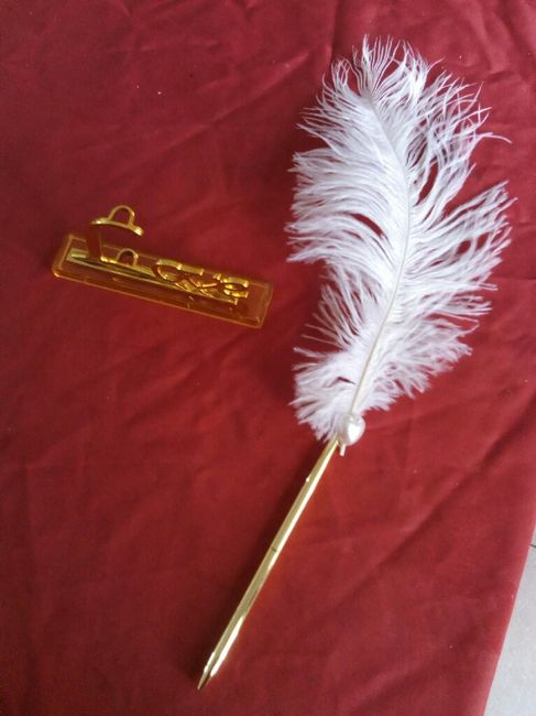 J'ai reçu mon collier, donc j'ai le choix entre 2 dont un avec un bracelet. Et j'ai reçu mon crayon pour mon livre d'or ( je vais sûrement le modifier un peut pour qu'il soit a mon goût) je suis très heureuse.