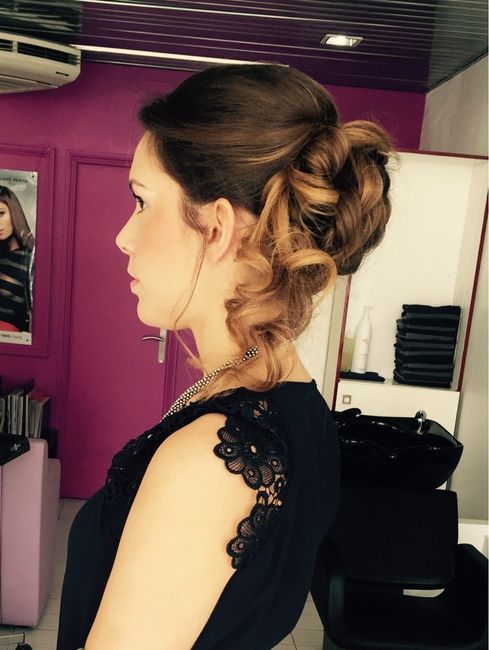 Voila un de mes derniers essai coiffure Coiffer une coiffeuse c'est comment dire ... Chiant Le rêve serais de pouvoir se décrocher la tête pour se coiffer ?Bref ma collegue a bien gérer ! Qu'en pensez vous ? Et n'hésitez pas à poster les votres...