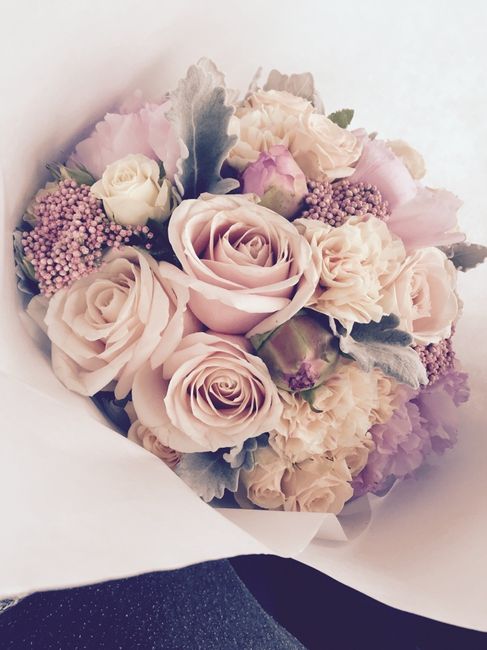 Salut les filles , alors aujourdhui je suis allé chercher mon bouquet de mariée test j'adore !La seule chose est que la couleur des pivoines n'est pas la bonne car elle ne les avais pas encore reçue . Elle seront rose tres pâle Je suis à j-19 !...
