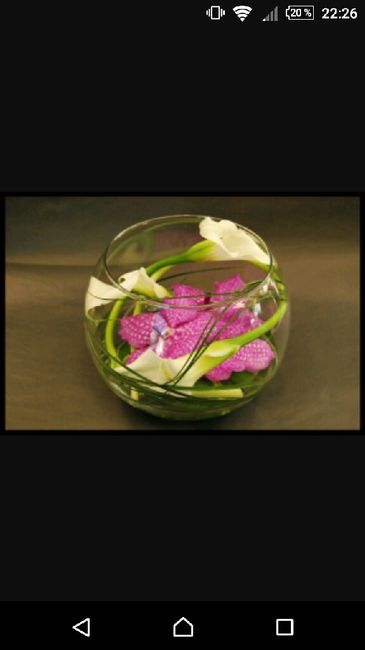 Hier, nous sommes allés voir notre fleuriste afin de finaliser notre deco !pour nos centres de table elle nous propose de jouer sur la transparence j adore, voici une photo de l idée, nous replacerons l orchidée par germini orange !Notre fleuriste a...