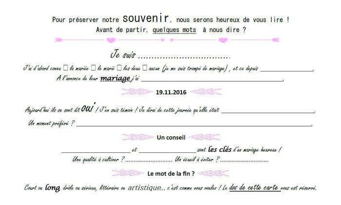 Coucou ! Que pensez-vous de cette affiche, que je voulais mettre dans un cadre a coté de mon plan de table ? Merci de vos avis xoxo Affiche Deuxième version : Affiche deuxième version