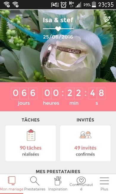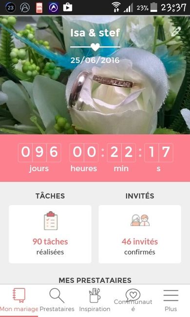 J - 1 mois tout pile pour moi les filles. Encore plusieurs détails non réglés. Tous les invités n'ont pas encore confirmé il en manque 6 en fait lol dernière limite le 1 er juin. Pas de nouvelles de mon traîteur mais il paraît que est normal d'après...