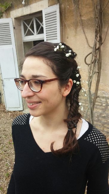 Apres un premier essai coiffure en octobre avec moins de longueur et sans fleur, un deuxième essai très satisfaisant !Je suis trop contente, c'est exactement ce que je voulais