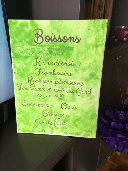 Bonsoir à tous et toutes, J'ai longtemps cherché ce que je pouvais faire, car je vais avoir un buffet froid. Mettre un menu sur chaque table n'avait aucun sens, alors j'ai opté pour une toile que je poserai sur la table du buffet. ...
