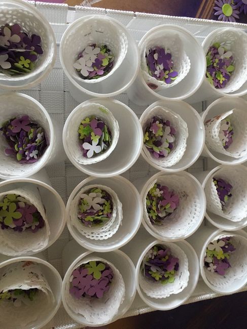 Encore moi! Bon les cornets sont faits depuis un moment. Mais la mission de mon cheri était de perforer les confettis. Perforatrice fleurs d'hortensia de Martha Stewarts