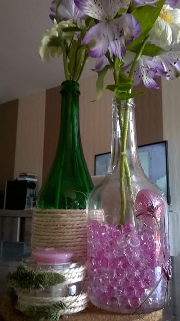 Je vous montre un peu de ma décoration de salle thèem champagne/champêtre. Je n'ai pas tout terminé mais j'ai déjà avancé grâce à mon chéri qui n'est pas manuel mais qui m'aide un peu tout de même Photophore centre de table Serviettes avec capsule...