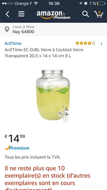 Voici la fontaine que nous avons acheté en double. Une pour l'apéro pour faire un cocktail de fruits style punch sans alcool et une pour les mojitos pour la soirée. Il faut que je demande à beau papa de nous faire un support. Elle fait 8L et pour le...