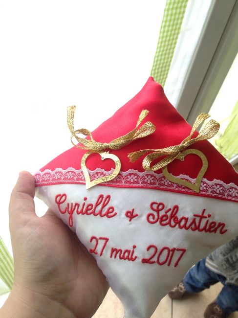 Salut les filles, Je voulais partager avec vous mon coussin d'alliance terminé. Il a été fait par ma grand mère et même s'il n'est pas "parfait" je l'adore ❤