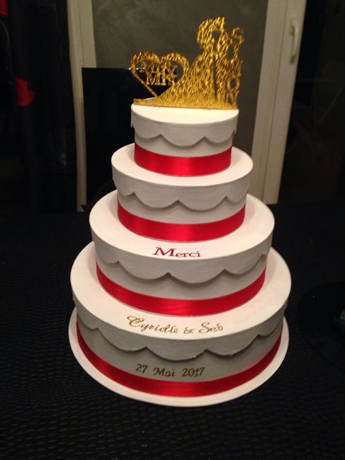 Je voulai un wedding cake pour mon mariage mais dans le pack all inclusive du traiteur y' avait in pièce montée. Qu'à ce la ne tienne, mon urne sera le wedding cake lol (Manque la fente qui ira à côté du merci)